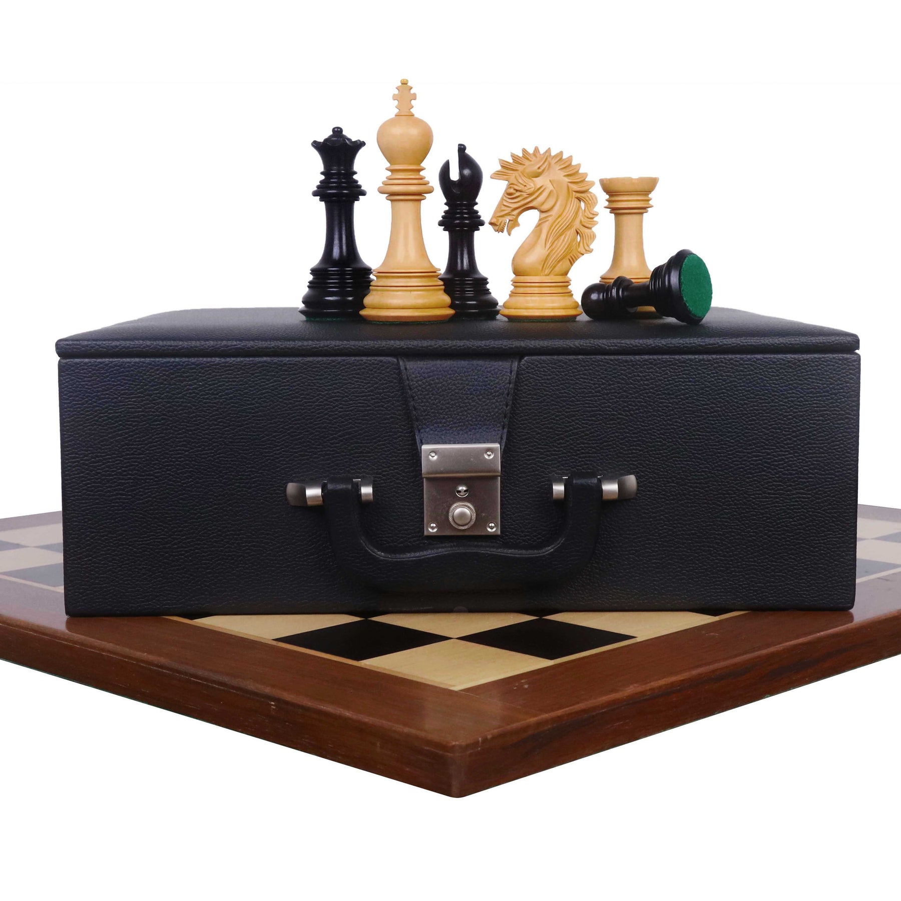 4.6" Mogul Staunton Luxury Chess Pieces in Ebony Wood with Large Ebony & Maple Wood Chessboard and Leatherette Coffer Storage Box
