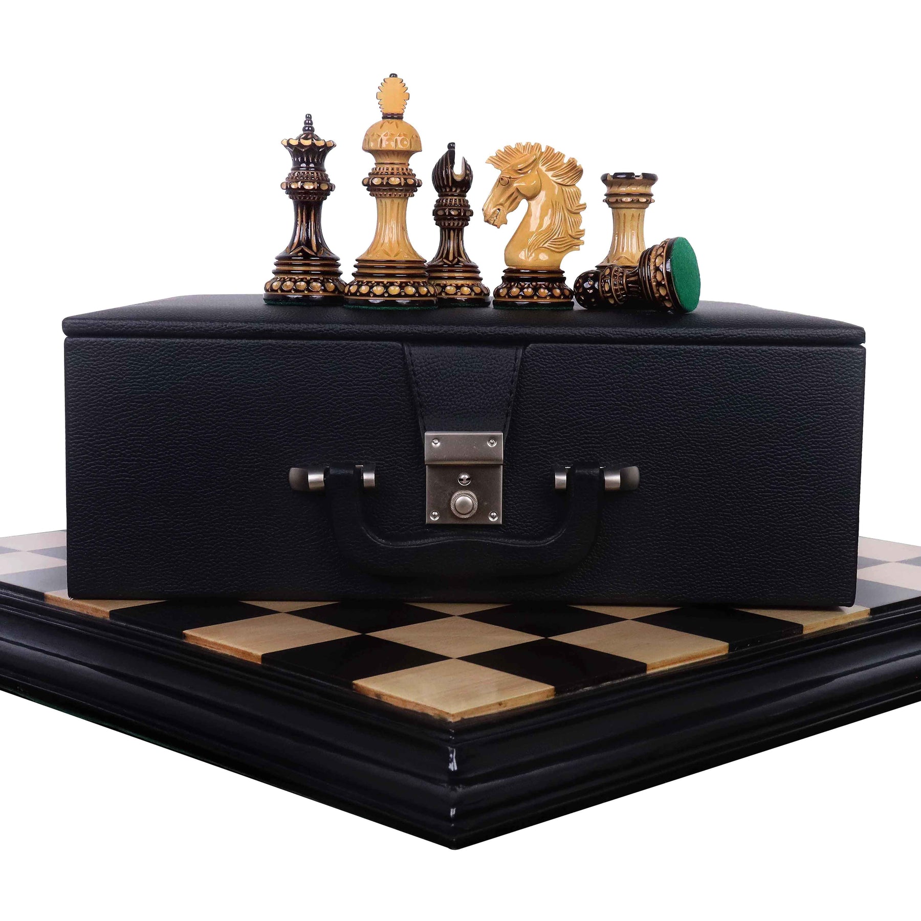 Alexandria Luxury Staunton Burnt Carving Chess Set - Triple Weighted Pieces with Board and Storage box