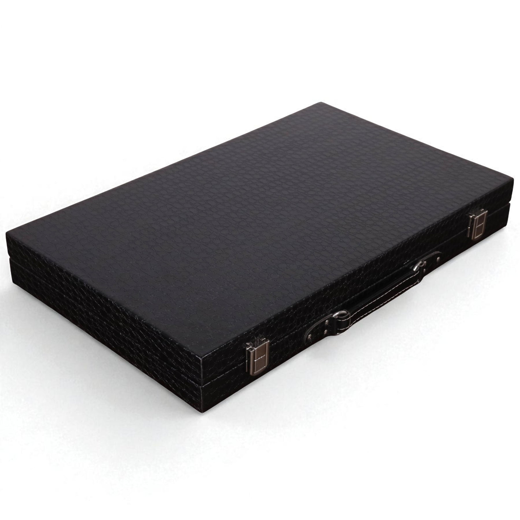 Elevate your game nights with this 18" Black Leatherette Backgammon Set, designed in a sleek briefcase style for easy portability and a touch of sophistication. The durable black leatherette exterior with secure clasps and handle makes it perfect for travel or display, while the bold red and white playing surface creates a striking contrast that enhances every match. Ideal for both beginners and seasoned players, this set blends classic gameplay with a modern, luxury finish, making it equally suited for personal enjoyment or as a stylish gift.