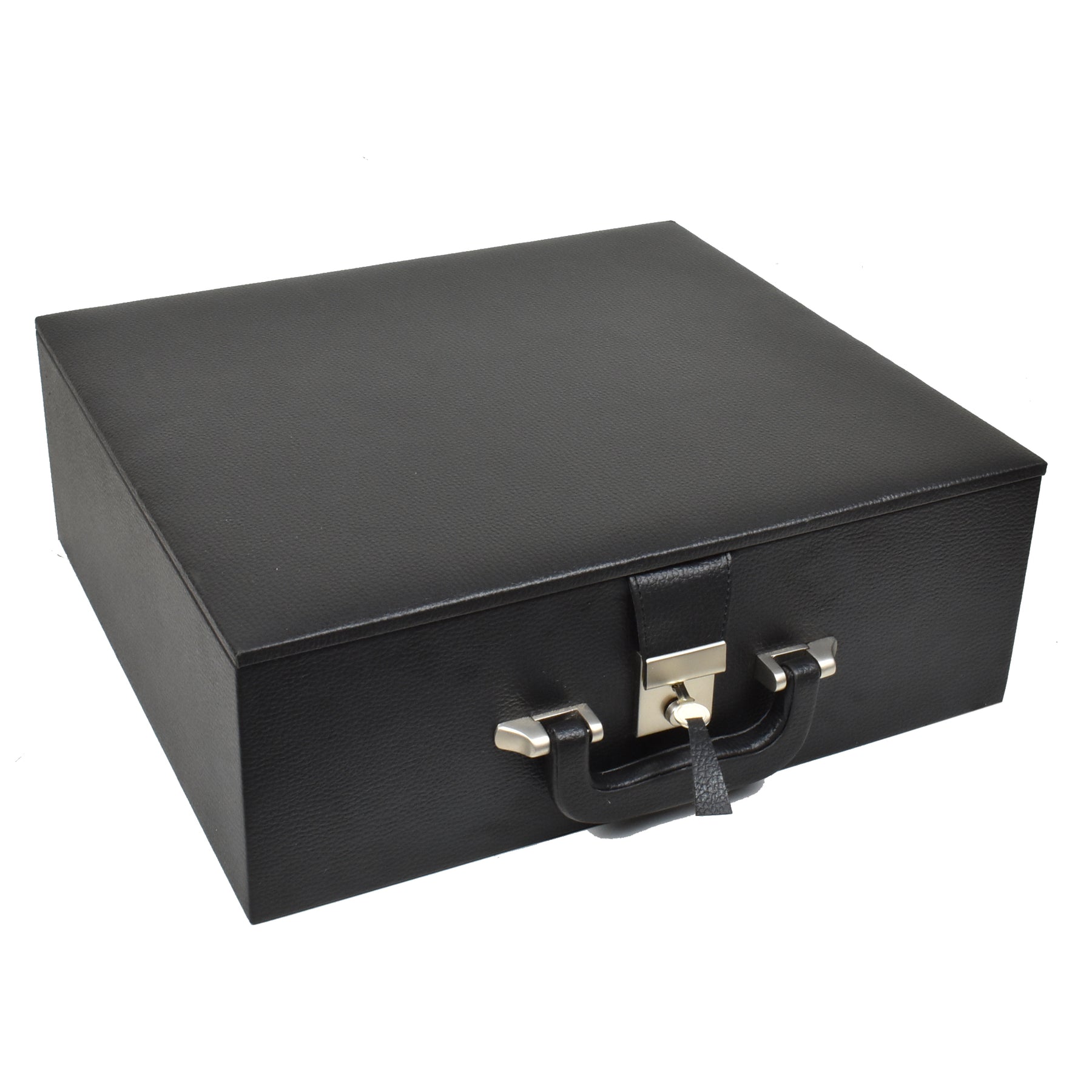 Storage Box :- Our Leatherette coffer box is well suited for storing Club Sized Chessmen (4.2 to 4.5 inch king size). The inner side of the box has been felted with a beautiful orange Felt. The cloth is soft and prevents any damage to the chess pieces. Also the trays have been crafted so that they are able to store chessmen of varying heights and base diameters.