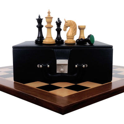 Combo of 4.5" Carvers' Art Luxury Chess Set - Pieces in Ebony Wood with Board and Box