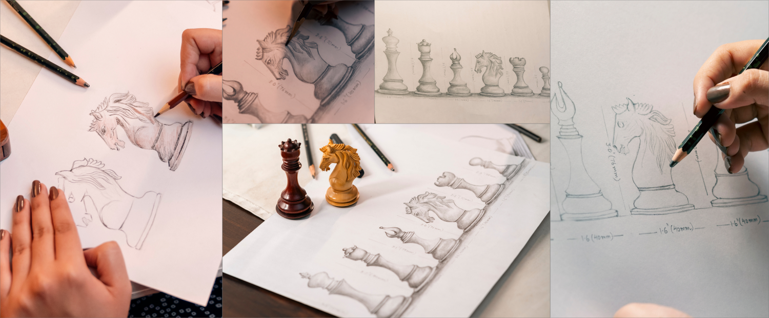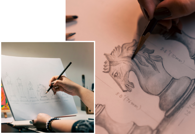 Our artists draw the first design of our chess sets. They carefully plan how each piece will look. It's like creating a special picture for each game. This makes our chess sets not just for playing but also for enjoying the beautiful designs the artists make.