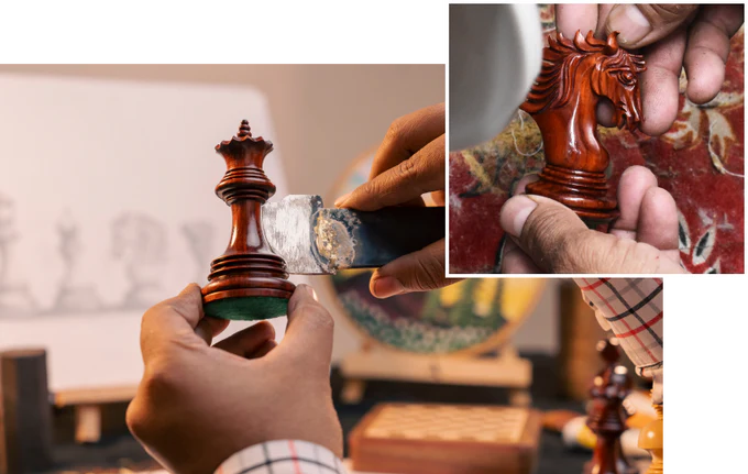 Our craftsmen skillfully shape and craft each chess piece, infusing them with passion and attention to detail. Their hands-on approach ensures that every piece is a unique work of art, contributing to the exceptional quality of our chess sets.