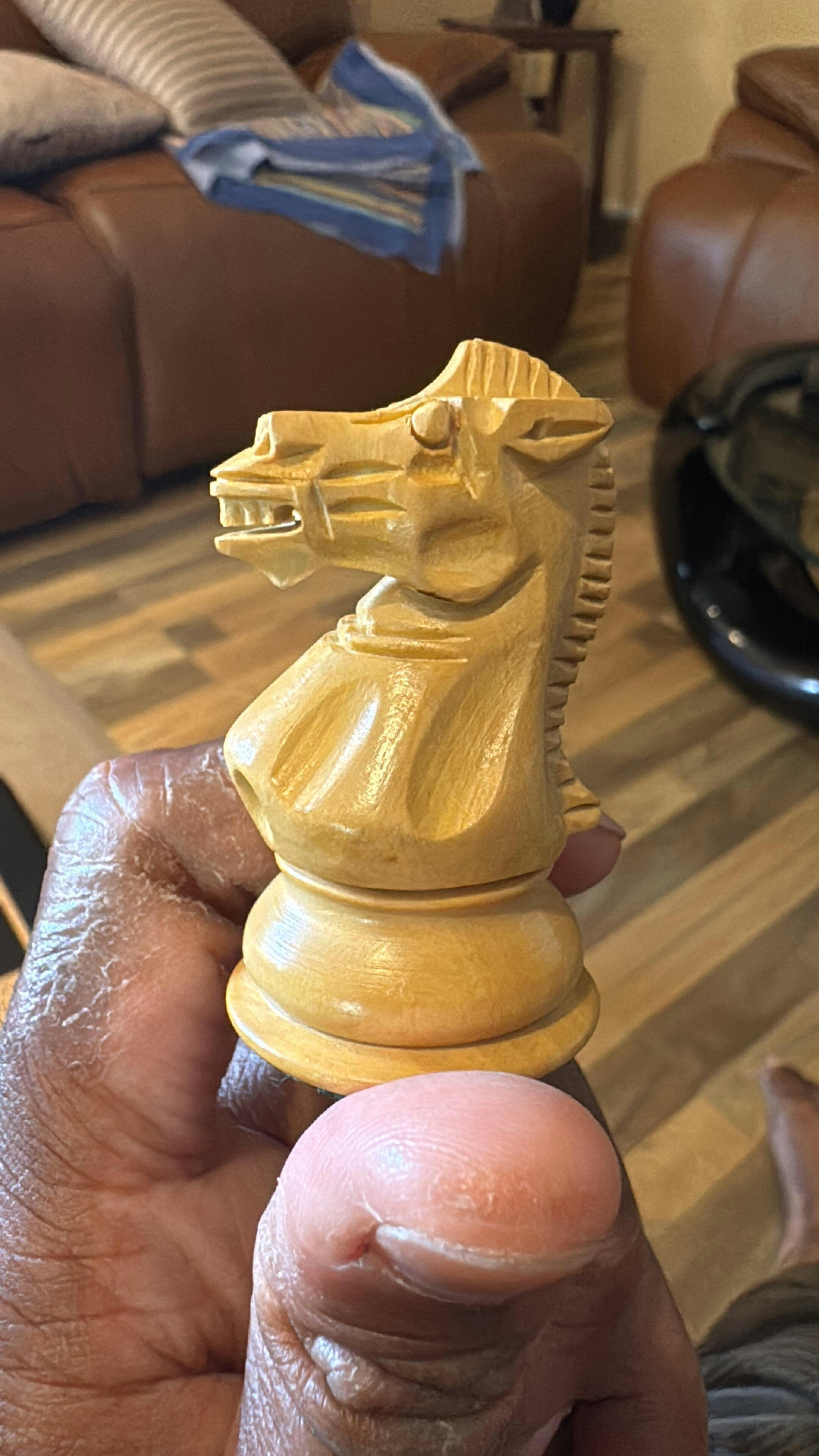 So incredible. The quality of carving is unmatched. I am SO PROUD of this amazingly crafted chess set that I am almost crying for its beauty. The weight is hefty and perfect.