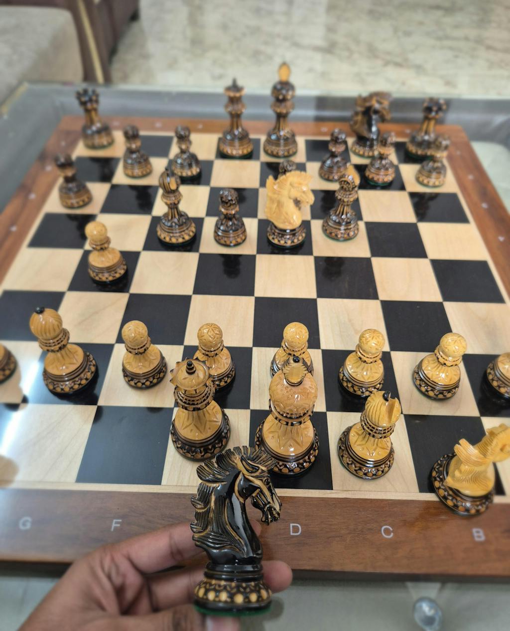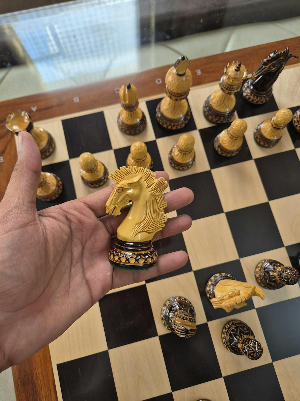 The carving on the knights is impressive, and the pieces have a nice, steady weight. Everything feels solid and well-made on the board, with the knights especially standing out and feeling premium in hand.