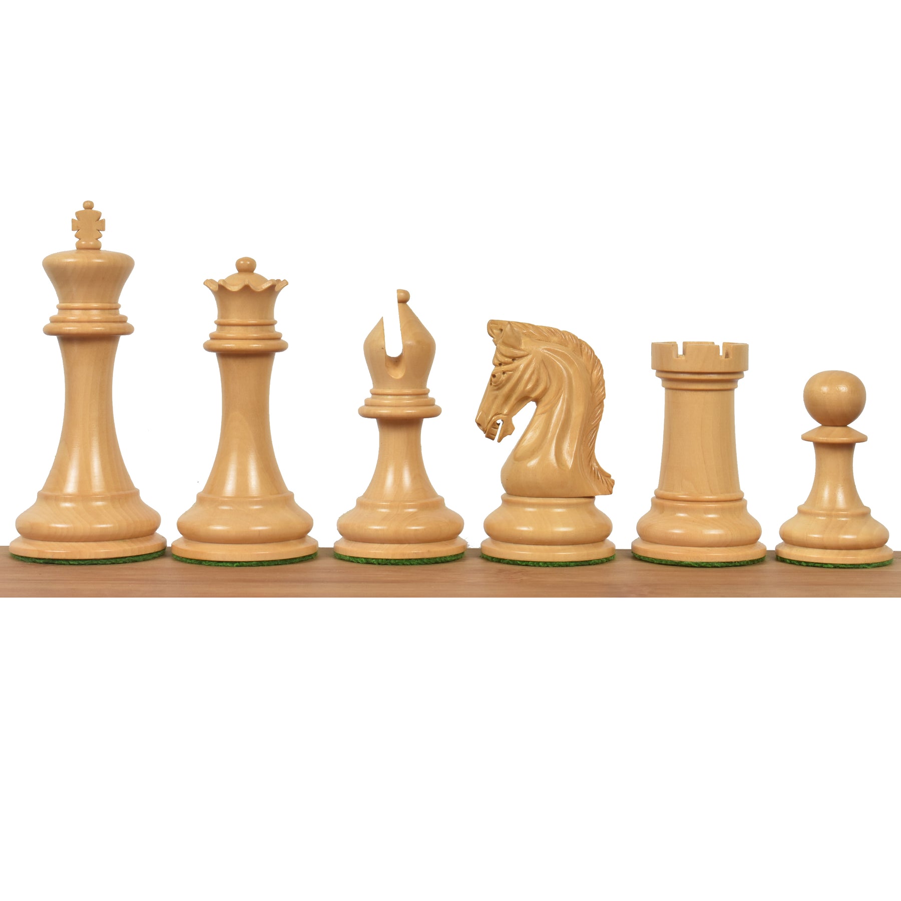 Chess Pieces:- These chess pieces are a reproduction of the Sinquefield Cup Chess Pieces for the 2016 Tournament. Knights of this design are inspired from famous Imperial design of Chessmen. It may possibly be the handsomest knights that we have made. The set has been traditionally triple weighted with lead infused in the base of the chess pieces.